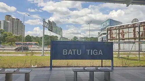 The Batu Tiga Komuter station is a KTM Komuter train station located in Batu Tiga, Selangor, Malaysia and served by the Port Klang Line.