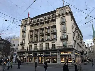 - ^ a b Zürcher Hoteliers (ed.), Hotel Zürich: Aus- und Rückblicke - 125 Jahre Zürcher Hoteliers (in German), ISBN 3-033-00329X