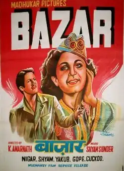Bazaar is an Indian Hindi language family-drama film of year 1949. The film is directed by K. Amarnath and produced under the banner Madhukar Pictures. The story was written by K. Amarnath, while the dialogue and lyrics were by Qamar Jalalabadi, with music by Shyam Sunder and Husnlal Bhagatram.[1][2]