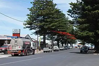 Beachport is a small coastal town in the Australian state of South Australia about 311 kilometres (193 mi) south-east of the state capital of Adelaide and about 34 kilometres (21 mi) north-west of the municipal seat in Millicent, located at the northern end of Rivoli Bay.[5][1] Beachport has a large crayfishing fleet, and is known for its 772-metre (2,533 ft)-long jetty, the second-longest in South Australia after the one at Port Germein. The towns Norfolk pines, white sand beach and clear waters are alluring to visitors[10]