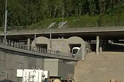 Tunnel's west portal under an elevated portion of Interstate 5 | |