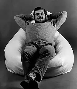 The Sacco chair (also known as a beanbag chair, or simply a beanbag), is a large pear-shaped bag or sack (Italian: sacco) made of leather or fabric and filled with expanded polystyrene foam pellets ('beans') or a similar material. It is an example of anatomic design, as its form is determined by the user's body. The Sacco chair was designed by Piero Gatti, Cesare Paolini and Franco Teodoro in 1968, and became "one of the icons of the Italian anti-design movement. Its complete flexibility and formlessness made it the perfect antidote to the static formalism of mainstream Italian furniture of the period” according to design historian Penny Spark.[1][2][3]