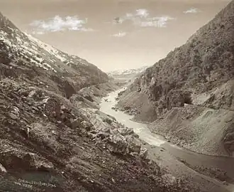 The Bear River was surveyed through the Cache Divide for diversion and irrigation in 1868.[15] After the First transcontinental railroad was completed in 1869, the Central Pacific was given over a third of the land in the Bear River Valley through land grants.[15] Alexander Toponce purchased 52,000 acres (210 km2) of this land in 1883 for $65,000.[15] He and John W. Kerr created the Corinne Mill, Canal and Stock Company and ultimately owned 90,000 acres (360 km2) of land in the area.[15] John R. Bothwell purchased much of this land in 1888.[15] Bothwell created the Jarvis-Conklin Mortgage and Trust Company with Samuel M. Jarvis and Roland R. Conklin, with $2 million on mortgage bonds.[15] The majority of these bonds were bought by Quaker societies in Scotland, England, and Ireland.[15] This money was used to create a diversion dam and irrigation canals, employing 7000 men in late 1889. The company also bought the Ogden City Water Works.[15]