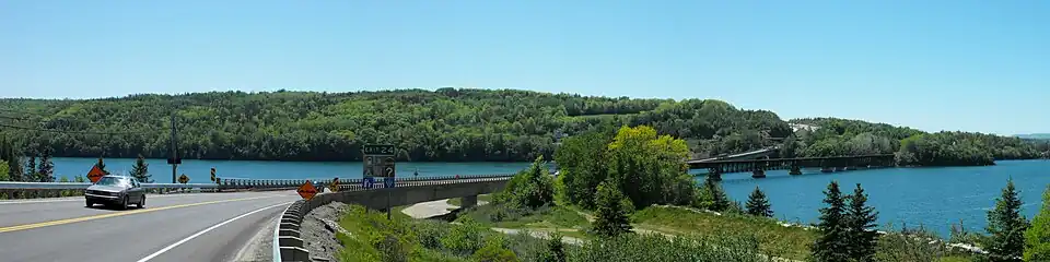 The river forms part of the boundary between Annapolis and Digby Counties. The steep forested slopes and natural environment, particularly in the lower reaches, have led to the nickname "The Switzerland of Nova Scotia" being applied to the river valley area.[5] The deeply cut valley, hewn from the contact between slate bedrock on the west and granite on the east, is a drowned river valley of which Digby Gut on the Bay of Fundy forms the northern extreme.[6]