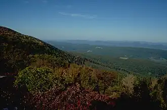 Bear Rocks is a widely recognized symbol of West Virginia wilderness and among the most frequently photographed places in the state. It is a well-known landmark on the eastern edge of the plateau that includes the Dolly Sods Wilderness. It sits in a high-elevation heathland punctuated with wind-carved sandstone outcrops and is home to more than a dozen rare plant and animal species. Situated on the crest of the Allegheny Front, Bear Rocks afford vistas over the South Branch Potomac River. Visibility can extend eastward to the Shenandoah National Park in Virginia.