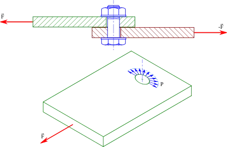 In a bolted connection, the role of the bolts is normally to press one parts on the other; the adherence (friction) is opposed to the tangent forces and prevents the parts from sliding apart. In some cases however, the adherence is not sufficient. The bolts then play the role of stops: the screws endure shear stress whereas the hole endure bearing pressure.
