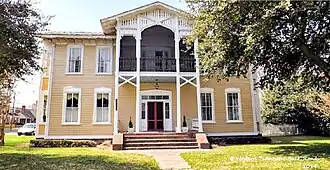 Beaton–Powell House, also known as Home Place, is a historic plantation house located at Boykins, Southampton County, Virginia. It was built in 1857, and is a two-story, Greek Revival style, timber frame dwelling with Italianate style embellishments. It features a massive, elaborate two-tiered central portico supported by three conspicuous diagonal braces link together four paired, seven-inch square chamfered columns.[3]