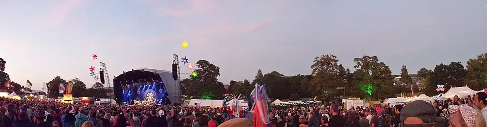 Beautiful Days is a music festival that takes place in August at Escot Park, near Ottery St Mary, Devon. The festival was founded by, and is managed by, the band the Levellers and was first held in 2003. The festival has no corporate sponsorship or branding,[1] leading to Virtual Festivals proclaiming it "the festival that sells out ... by not selling out".[2] In 2011 Beautiful Days was pronounced "Best Family Festival" by the UK Festival Awards,[3] later winning the "Grass Roots Festival Award" in 2015,[4] as well as the "Best Medium Festival" award from FestivalKidz the same year.[2] Every festival has sold out in advance;[5] although the 2020 festival was cancelled due to the COVID-19 pandemic. The current capacity is 17,500.[6]