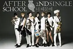 Because of You (Korean: 너 때문에; RR: Neo Ttaemune) is the second single album by South Korean girl group After School. It was released on 25 November 2009, by Pledis Entertainment.[1][2] The group also released an official remix version of the lead single of the same name on 21 January 2010.[3] The title track was written, composed, and arranged by Brave Brothers, and it was the first release without member So-young and with new members Raina and Nana.