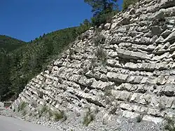 Bed thickness is a basic and important characteristic of beds. Besides mapping stratigraphic units and interpreting sedimentary facies, the analysis of bed thickness can be used to recognize breaks in sedimentation, cyclic sedimentation patterns, and gradual environmental changes.[10] Such sedimentological studies are typically based on the hypothesis that the thicknesses of stratigraphic units follows a log-normal distribution.[10][11] Differing nomenclatures for the bed and laminae thickness have been proposed by various authors, including McKee and Weir,[5] Ingram,[12] and Reineck and Singh.[4] However, none of them have been universally accepted by Earth scientists.[10][13] In the practice of engineering geology, a standardized nomenclature is used for describing bed thickness in Australia,[14] the European Union,[15] and the United Kingdom.[16]