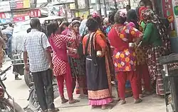 Bede (feminine: Bedeni) or Bedey, also known as Mon-tong, is an Indo-Aryan nomadic ethnic group of Bangladesh.[1] The Bede traditionally live, travel, and earn their living on the river, which has given them the name of "Water Gypsy" or "River Gypsy".[2] Bedes are similar to European gypsies.[3] They travel in groups and never stay in one place for more than a couple of months. The Bedes are a marginalized group. Historically the Bedes were unable to vote as they did not own land, nor could they apply for banks loan or microcredit for the same reason. This situation persisted until 2008, when they were finally granted the right to vote.[4]