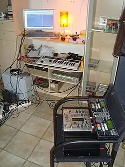 A bedroom producer is an amateur musician who creates, performs, and records their music independently using a home studio, often considered a hobbyist opposed to a professional record producer in the recording industry that works in a traditional studio with clients. Typically bedroom producers use accessible digital technology that costs less than the equipment in a professional studio, such as MIDI controller-based instruments and virtual studio technology (software synthesized instruments and digital effects), to create music for release to the world.[1] While a professional record producer oversees and guides the recording process, often working alongside multiple people such as studio musicians, singers, engineers, mixers, songwriters, arrangers, and orchestrators, a bedroom producer does everything independently: creating the ideas, recording them and processing them for release.[2] Bedroom producers are often self-taught, learning sound design, mixing and music theory by reading music production blogs and watching tutorials on the internet.[3] As bedroom producers depend on the accessibility of music technology, bedroom production has been made easier with advances in home computing power and digital audio workstations (DAW).[4]