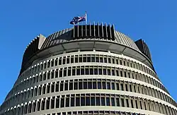 The Beehive (Māori: Te Whare Mīere)[2][3] is the common name for the Executive Wing of New Zealand Parliament Buildings, located at the corner of Molesworth Street and Lambton Quay, Wellington. It is so-called because its shape is reminiscent of that of a traditional woven form of beehive known as a skep. It is registered as a Category I heritage building by Heritage New Zealand.