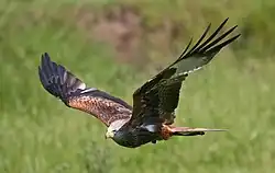 The red kite (Milvus milvus) is a medium-large bird of prey in the hawks and eagles family, Accipitridae. Although found across Poland, it is relatively the most common in the Pomerania region. The bird feeds on small rodents, frogs, young and infirm birds and carrion. The kite's cry resembles "hee-ye".[6] Kashubian folk tradition considered the bird to be antagonistic towards humans and their possessions; it was also associated with laziness. If a kite couldn't be procured for the ritual, a hen or a crow would be used instead. Today in Polish villages (e.g. in Łączyńska Huta) the kite is symbolized by an effigy stuffed with feathers.