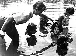 Behula (Bengali: বেহুলা) is a 1966 Bengali film directed by Zahir Raihan and stars Razzak and Shuchanda as lead pair. It was based on the Hindu mythology of Behula, who fights vehemently to goddess Manasa for her husband Lakhindar's life. The director was searching for a suitable hero for the character Lakhindar, he auditioned for many a man. Razzak came to give audition with a beard unshaved for seven days. This proved lucky for him as he was selected by the director.[1] It is one of the six films where Razzak and Shuchanda shared screen time.[2]
