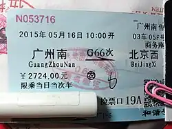 - ^ "G66时刻表" (in Chinese (China)). Retrieved 2018-09-27.