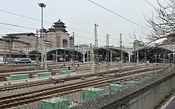 Beijingxi (Beijing West) railway station (Chinese: 北京西站; pinyin: Běijīngxī Zhàn), colloquially referred to as West Station (Chinese: 西客站), is located in western Beijing's Fengtai District. Opened in early 1996 after three years of construction, it was the largest railway station in Asia with an area of 510,000 m2 (5,500,000 sq ft),[1][2] before being surpassed by Shanghai Hongqiao railway station in platform capacity. The station serves in average 150,000–180,000 passengers per day with a maximum of 400,000 people per day.[3] It was expanded during the 2000s decade, during which several platforms were added. It also has a fairly large number of car-parking spaces.