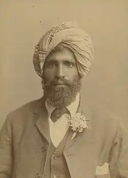 He moved to Australia in about 1890, arriving by sailing ship at the port of Fremantle.[1] At that time, communities of so-called Afghan (in fact hailing from a number of countries and ethnicities) cameleers were already established in Australia and involved in exploration and transport, having helped to construct the Overland Telegraph Line and open up the Western Australian Goldfields, amongst other accomplishments.[2]