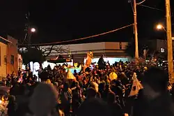 The Belgrave Lantern Festival (Belgrave Lantern Parade) is an annual celebration of the winter solstice, through community and creativity with a display of hundreds of homemade lanterns.[1] The event takes place in the main street of Belgrave from around 5pm - 7:30pm[2] and attracts thousands of visitors.[3] There are many lantern making workshops held before the parade from around March[4] at the Belgrave Library and other places such as primary schools.[5] The parade is open for everyone who has brought a lantern, and there are entertainers such as belly dancers, fire twirlers and the Ruccis Circus that perform before the parade begins.[6] The lanterns that are brought are a range of sizes, with some so big their owners have to wear them.[7] People start arriving in Belgrave from about 4 pm where they can enjoy bands, choirs and food stalls. The people wishing to take part in the actual parade part of the night are asked to gather in Hayes car park by 5 pm.[8] After the parade, Belgrave Library hosts storytime for children at 7 pm with other activities as well[9] such as face painting[10] There are some lanterns that are remembered by the annual parade-goers such as a Dalek and a TARDIS from the british television show Doctor Who. Some other memorable ones are the fauna inspired lanterns such as the cockatoo, dragonfly and frog.[11]