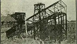Above-ground portion of the No. 2 Mine with a huge pile of mined ore (early 20th century) next to it. Such heaps were built in winter, as shipping was then at a standstill.[39] -