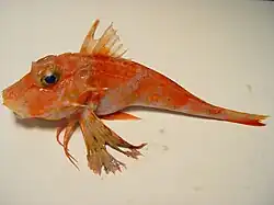 - ^ Christopher Scharpf & Kenneth J. Lazara, eds. (10 June 2021). "Order Perciformes (Part 12): Suborder Triglioidei: Families Triglidae and Peristediidae". The ETYFish Project Fish Name Etymology Database. Christopher Scharpf and Kenneth J. Lazara. Retrieved 28 May 2022.