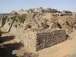 Standing 500 metres (1,600 ft) above the Jordan River Valley level, the plateau commanded the route from Gilead into the Kingdom of Jerusalem via a nearby river crossing.[3] To the north is the Sea of Galilee, and to the west are hills. The site of the castle dominated the surrounding area, and in the words of Abu Shama, the castle is "set admidst the stars like an eagle's nest and abode of the moon".[4]