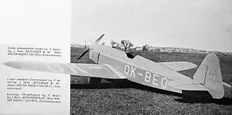 First flown in 1936, the Be-56 was a low-wing cantilever monoplane of wooden construction, with a single open cockpit and fixed tailwheel undercarriage. A two-seat version was produced as the Beneš-Mráz Be-52 Beta-Major, with tandem open cockpits