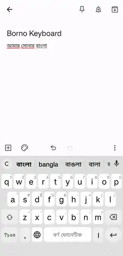 Borno (Bengali: বর্ণ) is a 100% ad-free Bangla input method editor for Android,[24] maintained and developed Codepotro.[25] Even though its Android version is proprietary software, a free software version exist, known as Borno Lite, but available only for Windows.[26] It has nine different Bangla keyboard layouts including Borno Phonetic, which is a phonetic keyboard layout like Avro. It is still under development.[22]