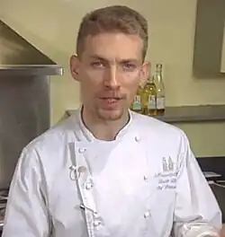 Blin was born in Villedieu-les-Poêles,[3] Normandy, France.[4] He was apprenticed to one of the two bakeries in the small town he grew up in, before serving a second apprenticeship as a pastry chef.[5] The first product that Blin learned to bake was a chouquette, an item he still produces regularly.[6] Blin completed his year of national service as a chef in the French Navy, providing food to the officers' mess in Cherbourg.[5][7] During this time he made a mistake whilst chopping a tomato and cut off the ends of some of his fingers with a butcher's knife.[8] Blin persuaded the navy to allow him time to study for the Brevet de Maîtrise Pâtissier (master pastry chef's certificate) and completed it within the year.[7] After completing his service Blin worked at the Normandy Hotel in Deauville before becoming senior pastry sous chef at the Hôtel Ritz Paris in Paris in 1991.[5]