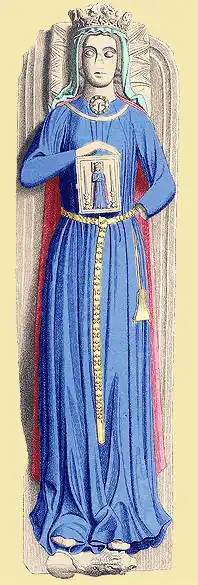 Effigy of Berengaria in the chapter house of L'Épau Abbey, Le Mans, which she founded | |