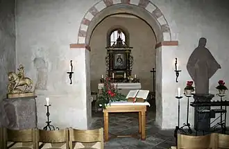 Regular processions to the church were mentioned in 1586, from surrounding villages including Villmar on the Lahn and Panrod, supporting the view that the church was a Mutterkirche (mother church) for a region.[1] It was an early Christian centre in the area,[3] along with the St. Blasius, Dornburg, St. Severus and St. Lubentius, Dietkirchen. The church served as a parish church until 1571, then as a Friedhofskirche (cemetery church) for the surrounding which belongs to Werschau.[2]