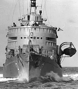 In the spring of 1939, Berthelsson took over as flag lieutenant (flaggadjutant) in the Coastal Fleet with Rear Admiral Gösta Ehrensvärd as commander and Captain Helge Strömbäck as flag captain. During the mobilization in the autumn of 1939 and the subsequent years of emergency preparedness, Berthelsson performed one of his superiors' highly esteemed work. It was above all the development of the ships' tactics and the torpedo's effort, both with ships and aircraft, that he had to devote his strength to, but at the same time he had to convey to daily press and radio events and developments to keep in touch with the public. Among other things, he also participated in the publication of various defense magazines and books, which were published by various main authors.[2] After three years in this position, Berthelsson got a long-awaited position as ship captain on the destroyer Karlskrona during the summer of 1942, followed by a similar command on the destroyer Stockholm in 1943. He was largely allowed to conduct escort service in the Baltic Sea for shipping protection against German sea and air forces and Russian submarines, in which he was involved in several incidents.[2] However, in the autumn of 1942, Berthelsson had already taken up the position of teacher in tactics at the Royal Swedish Naval Staff College and in 1943 was appointed lieutenant commander. During his three years as a tactics teacher, the reorganization of ship tactics began, which was conditioned by new weapons and on-board radars, which came to strongly influence the ships' way of behaving both at sea and in the bases. His pioneering work also came to fruition in the 1943 naval inquiry into naval warfare, where he served as secretary with Rear Admiral Gunnar Bjurner as leader. The type of ship, the armored destroyer, which was launched at the time, can be said to have served as a model for the Halland-class destroyers who began to be planned and built in the late 1940s and the Östergötland-class destroyers during the 1950s. His diligent efforts to keep the navy with destroyers at sufficient numbers were a marked feature of his business. Berthelsson's good handling of investigative issues led him to be appointed as an expert in the 1945 Defense Committee as an assistant to the then Rear Admiral Stig H:son Ericson, who was the navy's representative. The inquiry's work led to the Defence Act of 1948.[2]