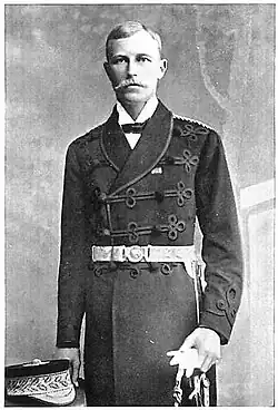 He received education and training from Haileybury Imperial Service College and the Royal Military Academy Sandhurst.[13] He was commissioned into the British Indian Army on 25 August 1886.[14][15] His first posting was in the Foreign and Political Department of the British Indian Army.[16] In 1892 he was posted as Assistant to the British Agent at Gilgit.[17] As Lieutenant, in 1892, he was posted as Acting Assistant Political Agent in Chitral in the turbulent period following the death of Mehtar Aman ul-Mulk. He was serving in that capacity when the Siege of Chitral unfolded in 1895.[18][19][20]