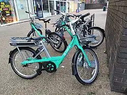 Beryl also runs a dockless cycle sharing scheme, currently implemented in towns and counties including Brighton and Hove; Cornwall; Dorset; Greater Manchester; Hereford; Hertsmere; Isle of Wight; Leeds; Norwich; Plymouth; Portsmouth; Watford; and the West Midlands.[8][9][10] In Manchester, for sponsorship reasons, they operate under the name Starling Bank Bikes.[11] In some locations, such as Bournemouth, Christchurch and Poole, Norwich and West Midlands, Beryl Bikes also provides a scooter-sharing system, known as kicksharing.[8]