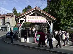 The directive was thus given: it was necessary to develop the Bregille area and provide it with effective means of communication. Émile Picard, then a wealthy landowner in Bregille and an industrial watchmaker, undertook the construction of a funicular railway, which was completed in 1912.[25] This was somewhat belated, given that the spa activity was in decline and World War I was approaching, yet the funicular operated until 1987.[26]