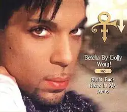 Another version of "Betcha by Golly, Wow!" was released by American musician Prince (his stage name at that time being a symbol with no known pronunciation, see cover art) on his 20th album, Emancipation (1996). Prince had stated that he always wanted to release his own version but his record company, Warner Bros. Records, had not permitted it. The CD single was released in two formats in the UK, one with a picture sleeve and one with an orange cardboard sleeve that included a picture disc and a mini-poster. The song was also issued on cassette. All versions of the single had "Right Back Here in My Arms" as the B-side. Both tracks were the album versions. The track was released as a promotional single in the US; a music video was also produced.