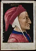 - Dante's Rhymes (Ricc. 1040): Written between 1440 and 1450, the first folio of this codex (f. Iv) features a famous portrait of Dante, showing the facial features that Boccaccio ascribed to him, maybe basing himself on a funerary mask of the poet.