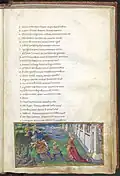 - The Virgilio Riccardiano (Ricc. 492): It is the most famous manuscript of the Biblioteca Riccardiana, whose book collection it entered no later than 1706. Transcribed by “Nicolaus Riccius Spinosus” – one of the best-known copyists of fifteenth-century Florence – and illuminated by Apollonio di Giovanni and members of his workshop, it contains Virgil's major poems (i.e., that is, the Bucolics, the Georgics, and the Aeneid). More precisely, the lower margins of the manuscript are decorated with 88 miniatures (19 of which are incomplete) illustrating the texts.