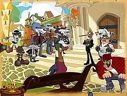 This asthmatic, vegetarian wolf is a genie in training. To prove his mother's innocence, he will have to unravel some 60 puzzles in five chapters. The number and treatment of fairy tale characters are reminiscent of movies like Shrek or Hoodwinked. It includes Pinocchio and Geppetto, Little Red Riding Hood, the Three Little Pigs, Prince Charming, and of course, the Big Bad Wolf.