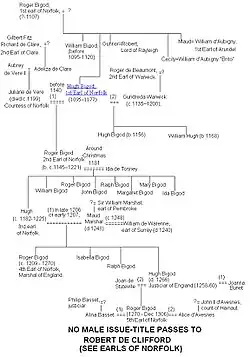 - Roger Bigod, 5th Earl of Norfolk, son of Hugh Bigod (Justiciar), heir of 4th earl. No male issue; lands and titles revert to crown