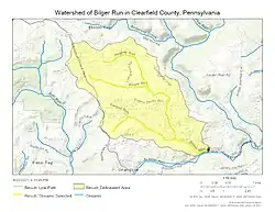 Bilger Run is a 5.05 mi (8.13 km) long 2nd order tributary to Kratzer Run in Clearfield County, Pennsylvania and Kratzer Run's largest and only named tributary. Its watershed accounts for nearly half of the greater Kratzer Run watershed.[6] This is the only stream of this name in the United States.[1] Bilger Run has an ID number of 1169617 from the US Board of Geographic Names.[1]