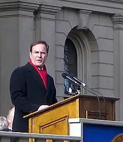 On September 12, 2017, Schuette announced his campaign for governor in Midland, Michigan.[31] On August 7, 2018, Schuette won the Republican nomination for Michigan governor by defeating Lieutenant Governor Brian Calley and state Senator Patrick Colbeck.[32] His candidacy was supported by President Donald Trump and Vice President Mike Pence.[33][34] On November 6, 2018, he lost the general election to Democrat Gretchen Whitmer, a former Michigan senate leader, by a nine-point margin.