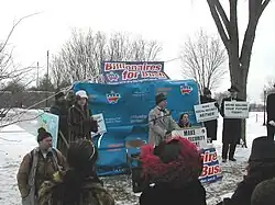 A "Million Billionaires March" on July 27, 2004, in conjunction with the 2004 Democratic National Convention in Boston, Massachusetts, attracted 150 marchers who presented a faux check made out for the amount of "whatever it takes" to the local offices of the Republican Party, as part of an effort to "defeat" Kerry.[7]