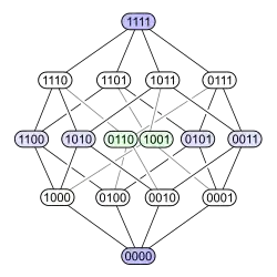 A Hasse diagram: representation of a Boolean algebra as a directed graph