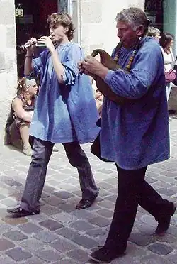 There are two bagpipes called binioù in Brittany: the traditional binioù kozh or biniou-bihan (kozh means 'old' in Breton; bihan means 'small') and the binioù bras or binioù braz (bras means 'big'), which was brought into Brittany from Scotland in the late 19th century.[1] The oldest native bagpipe in Brittany is the veuze, from which the binioù kozh is thought to be derived.