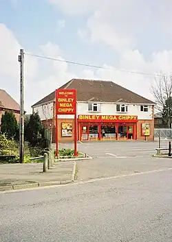 The suburb is the location of the Binley Mega Chippy, a fish and chip shop opened in 2004.[11] In early 2022, users on social networking platforms Twitter and TikTok started sharing ironic memes about the chip shop.[11] A now renowned jingle about the chip shop was created and the venue went viral on the internet.[11][12] A hashtag "#BinleyMegaChippy" was viewed online nearly 235 million times by June 2022.[11][13] Staff and local shoppers admitted their initial confusion about the sudden surge in popularity.[12][11] By May 2022, the venue had become so well known that it received visitors from Scotland, Portugal, and Australia.[14][15]