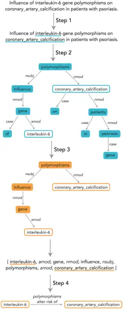 Natural-language processing and text mining technologies can help biocurators extract information for manual curation.[80] Text mining can scale curation efforts, supporting the identification of gene names, for example, as well as for partially inferring ontologies.[81][82] The conversion of unstructured assertions to structured information makes use of techniques like named entity recognition and parsing of dependencies.[83] Text-mining of biomedical concepts faces challenges regarding variations in reporting, and the community is working to increase the machine-readability of articles.[84]