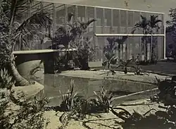 The Heller Residence #2 or Bird-Cage house (a termed coined by a June 1950 Life article of the same name), was a split-level wood and concrete residence surrounded by a diaphanous aluminum screen, constructed in 1949 in Miami, Florida, USA.[1] The building incorporated the use of new materials, including the presence of open-web steel trusses, never seen in residential construction before.[2] The latest and most-popular of a series of homes designed by Igor B. Polevitzky called the Tropotype, these homes were developed between 1936 and 1949.[3] Designed specifically for the South Florida environment, these homes emphasized health, happiness and productivity for the occupant. The Bird-Cage House and other Tropotypes before it, utilized passive-energy designs making them extremely energy-efficient and contained an ambiguous living envelope to encourage what was considered at the time to be a healthy, simultaneous indoor-outdoor lifestyle. Referring to the house during a 1946 lecture at the University of Florida, Polevitzky described them as "...architecture as a volume rather than a mass".