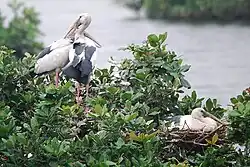 Some of the winter migrants seen here are greater flamingo, Kentish plover, lesser sand plover, Pacific golden plover, grey plover, common sandpiper, curlew sandpiper, Eurasian curlew, osprey, little stint, Temminck's stint, black-tailed godwit, common redshank, greenshank, common tern, little tern, whiskered tern, gull-billed tern, Caspian tern, brown-headed gull, Pallas's gull, slender-billed gull, painted stork, openbill stork and grey heron. Thousands of Eurasian wigeon, northern pintail, northern shoveller also use the backwaters.