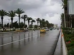 The city's climate is unique by North African standards due to its geography. The rainy season typically lasts from October to March but can extend from September to May. Bizerte experiences an average of 110 rainy days per year greater than 0.1 mm, a relatively high number for its annual rainfall total of 653.2 mm despite its modest elevations. This is partly due to its direct exposure to westerly and north-westerly winds, which are very active throughout the year. These winds account for over 58% of all wind flows in winter and nearly 50% in summer.[13]
